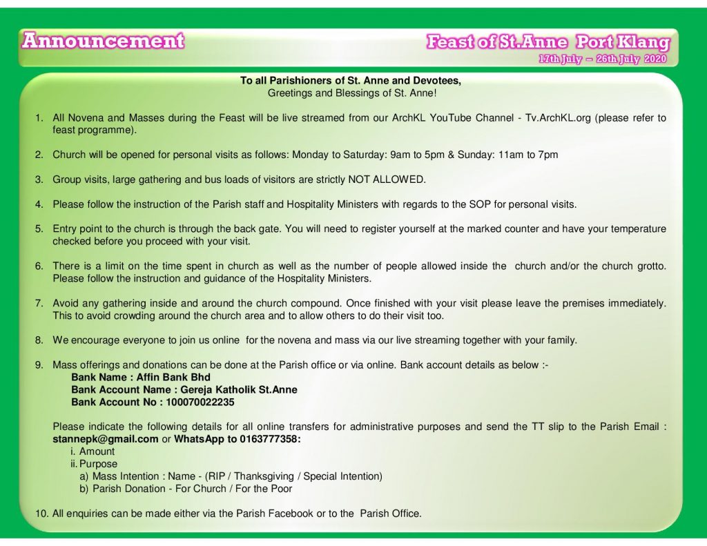 annoucement mass booking and donation-page-001 Uploaded 22/07/2020 DONATIONS FOR PARISH UPKEEP, THE POOR AND MASS OFFERINGS.